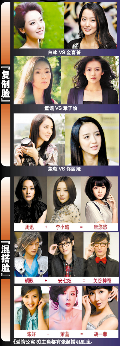 《爱情公寓3》里的“明星脸”让这部剧吸引了更多观众,但这批演员要想在剧外再红一把,同样也是需要更多更好的作品,否则,除了“明星脸”外,他们如果永远被观众当作某个角色,那对于演员来说,应该不能算一种成功吧。