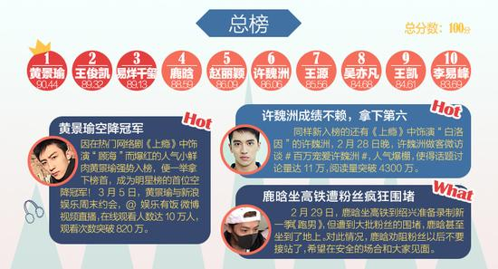 [明星榜]黄景瑜空降冠军 许魏洲拿下第六
