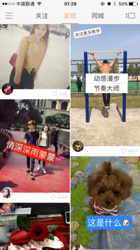 打开快手,映入眼帘的是直观甚至略显简陋的界面,短视频整齐排开,点击即看,长度一般在几秒到几十秒之间,内容基本是用户用手机的自拍,包括:唱歌跳舞等表演、猫狗萌宠、梳头扎辫等生活技巧、吃美食、搞笑段子等,但其在视频风格、人员着装、画面背景,乃至歌舞审美(喊麦、鬼步舞)上,都与互联网用户所追捧的“小资”与“精致”相去甚远,带有很强烈的三线城市及乡镇风格。