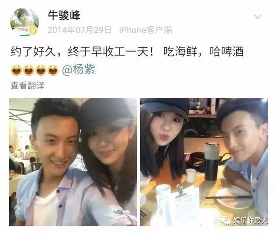 比如说,拍完《战长沙》,牛骏峰就跟杨紫成了“饭友”↓
