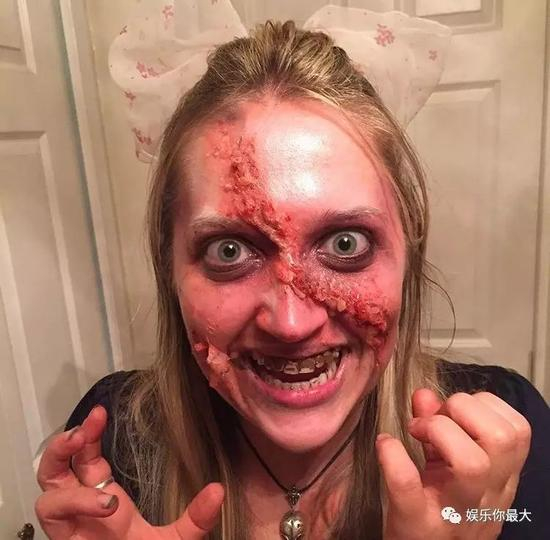 而她的万圣节妆容也实在是太逼真了…真的让人很慌了…