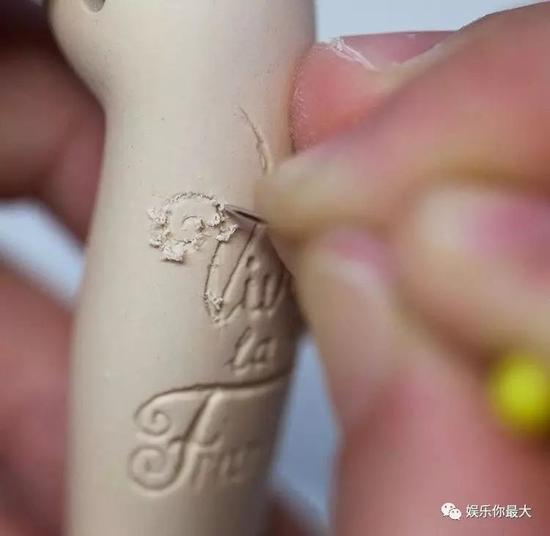 她特别喜欢给娃娃的身体花上刺青,那是真的用针刺出,再上色,再烧制。