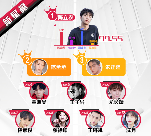 本期新星榜新人王是陈立农,范丞丞以微弱差距位居第二。下期见!(南音/文)