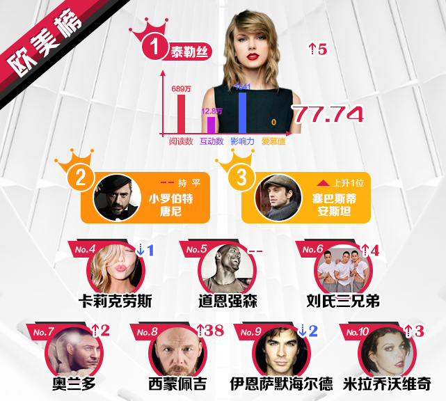 欧美榜:泰勒斯威夫特夺冠