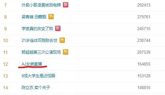 AJ选手这波B站女装直播的观看人次瞬间就冲上了300万,还立刻登上了高位热搜。