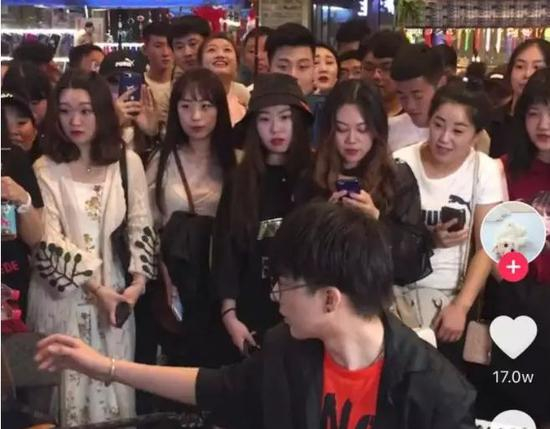 前面提到过的安东老街是摩登兄弟长期直播的所在地,他们在街上一家养生驴肉店里直播,现在每天晚上都会被围的水泄不通,有时候保安都不给粉丝开门,粉丝们只能远远观望。