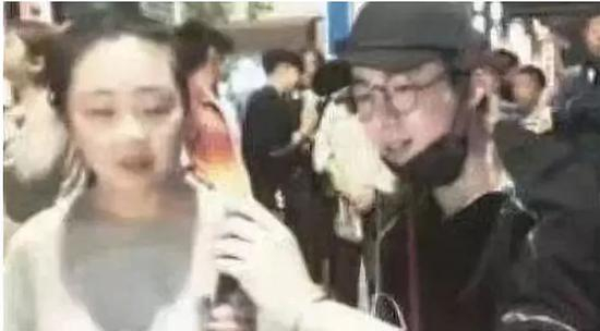 粉丝见男朋友来了很高兴,但男友突然对刘宁宇动手,一把掐住刘宇宁的脖子推搡起来,围观群众上来拉架才把他拉开。