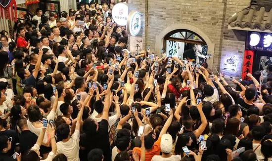 有的粉丝为了在直播的时候站到前排,把午饭晚饭都集中到一起吃,在直播地点一站就是半天,各种送花送水送吃的,把一条街堵得水泄不通,毫不夸张地说他们一个乐队养活了一条街…
