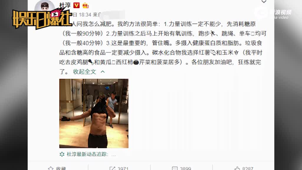 杜淳晒性感腹肌传授健身心得