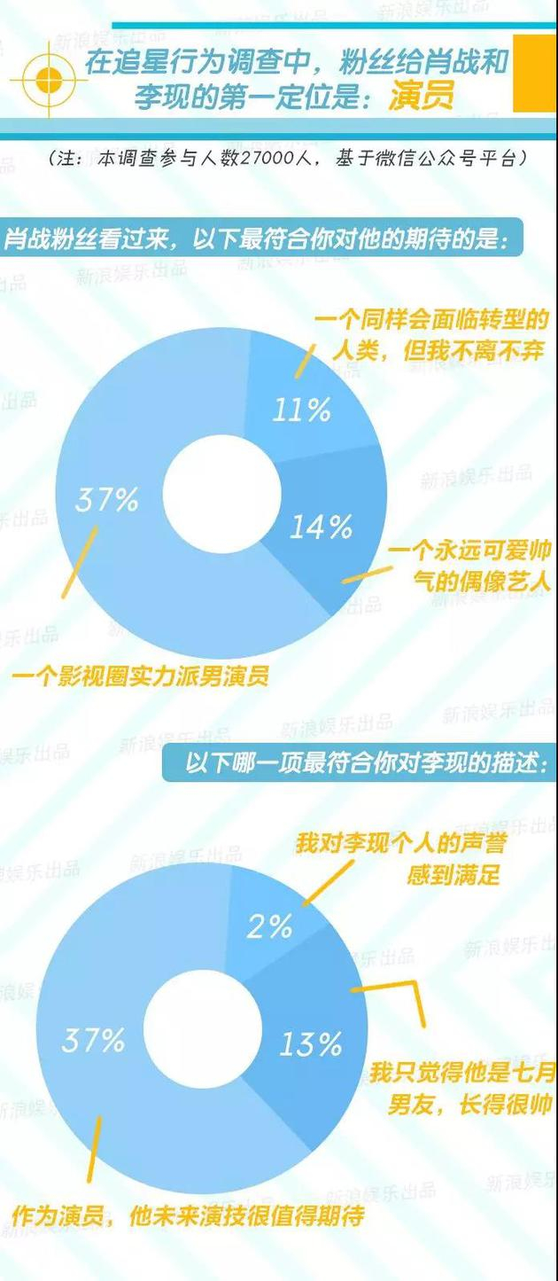 娱理工作室在微信公众号平台做了一份追星行为的调查,参与人数27000人,粉丝给肖战和李现的第一定位都是演员。