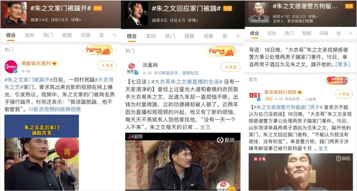 在短视频平台上搜索大衣哥,会出现朱之文相关用户,某平台上的“大衣哥邻居小花”关注者76.1万,“大衣哥正能量(不忘初心)”关注者超过60万。