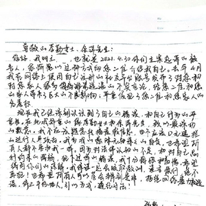 摘要: 网友晒出手写信向余景天父母道歉,表示已经深刻认识到自己的错误,保证会吸取教训、谨言慎行、绝不再犯。