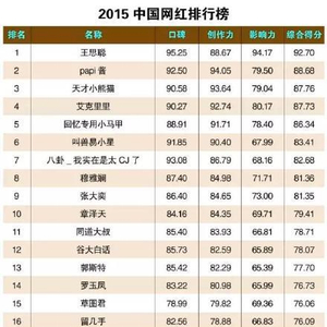 新浪娱乐讯 日前,《互联网周刊》发布了2015年中国网红排行榜,它主要依据在社交媒体的口碑、创作力、影响力进行综合排名。最终统计结果显示,国民老公王思聪力压历任网红女友,排名第一。