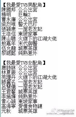 (以下提名整理cr微博网友@狂爱kuangaiTVB)