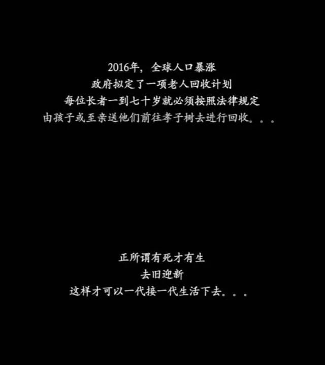 可惜,小偷举报这里窝藏超龄老人,孝全母亲的事始终还是被发现了。法庭最终宣判老太太要被强制送往“回收”。