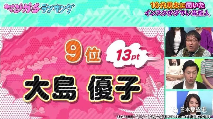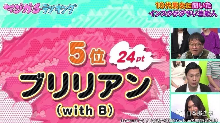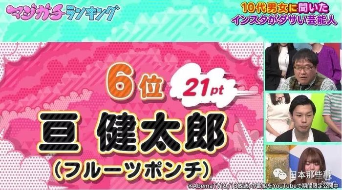 这次要说的,则是AbemaTV做的一项关于明星ins的排行榜。