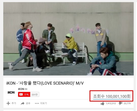 男团IKON《LOVE SCENARIO》youtube点击数突破1亿