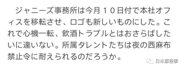 但事务所也并没有闲着,前不久J家发布了“西麻布禁酒令”,也开展了全社艺人都要参加的“法律知识讲座”,为了防止丑闻的再次发生。但想一想自家三十多岁甚至四十多岁的爱豆被限制饮酒甚至被要求参加这种守法讲座,真是又好笑又辛酸……