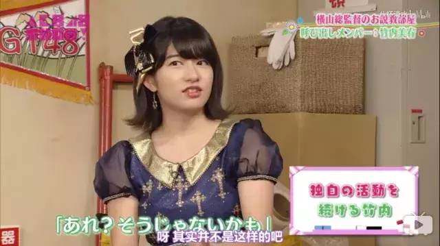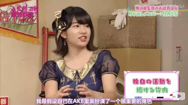 在与AKB48的总监督横山由依在节目中的对谈,也能感受到竹内美宥内心满满的不甘,但她却不会自怨自艾,依旧充满信念。