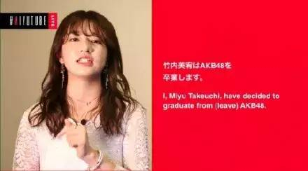 9月4日,竹内美宥在showroom的网络配信中视频发表了自己将从AKB48毕业的消息。