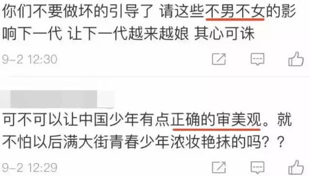 结果网民一窝蜂地对这几位明星展开人身攻击,认为让这样的“娘炮”代表中国少年,会给下一代的审美造成不好的影响。