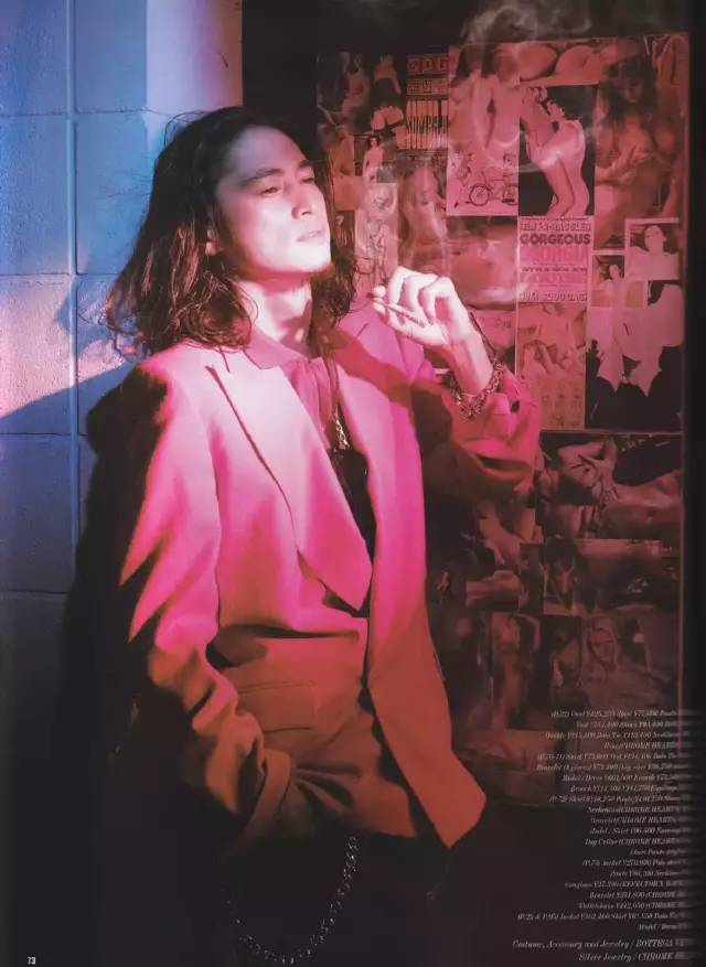 满脸胡渣加上凌乱长发,这样的搭配呈现出独有的气质,一半妩媚一半刚毅。无论多么怪异夸张的造型,总能从中找到属于他自己的影子,温柔的气质里总有一种锋利。