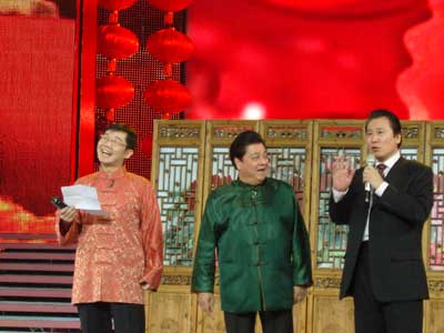 毕竟语言类节目还是吸引眼球,因为冯巩的出场让窗外刚刚响起来的鞭炮声逐渐降下来。冯巩幽默滑稽的表演以及“事迹突出椎间盘更突出”等包袱,还是让观众感受到一份快乐。接下来,李金斗、大兵、赵卫国的相声《免费电话》由于李金斗的出色表演以及对时下电视广告的讽刺,使得现场气氛火爆起来。