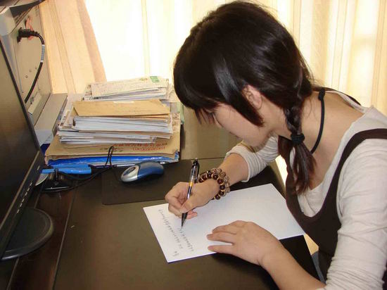 虽说在蒋敏的家里扑了个空,但远道而来的童蕾并没有气馁,她决定前往蒋敏的工作单位——彭州市公安局,继续寻访蒋敏。彭州市公安局离蒋敏的家并不远,我们很快就到了,一进大门,童蕾就向两位警察打听蒋敏的办公室在哪儿,两人说蒋敏在三楼的政工监督室工作。童蕾在道谢后转身就往楼上赶,这时记者听到后面有警察说:“哎,你们快来看,这个女的不是《亮剑》里李云龙的媳妇吗!”在热心警察的指引下,童蕾很快就找到了蒋敏的办公室,并见到了蒋敏的十几位同事,但遗憾的是,蒋敏的同事告诉童蕾:蒋敏不在彭州,已经去北京了…… 失望之余,童蕾很快调整心情,她希望蒋敏的同事能向她讲述一下蒋敏工作和生活中的点点滴滴,从而帮助她更多地了解蒋敏。在得知童蕾在《震撼世界的七日》中饰演蒋敏之后,蒋敏的同事热情地接待了童蕾,他们把童蕾带到了蒋敏的办公桌前,上面堆满了全国各地的群众寄给蒋敏的信和名信片,从信件的地址和署名上看,有不少寄信的人都是学生。蒋敏桌上的电脑是开着的,上面有一些蒋敏女儿、母亲等家人的照片,大家都知道,蒋敏的女儿、母亲等多位亲人在这次地震中不幸遇难了,看着那一张张生动的照片,听着蒋敏的同事在讲述着蒋敏的故事,记者看到童蕾的眼圈红了,眼泪在眼圈眶里打着转。童蕾后来说,那一刻她感觉到自己离蒋敏更近了。  童蕾给蒋敏的一封信