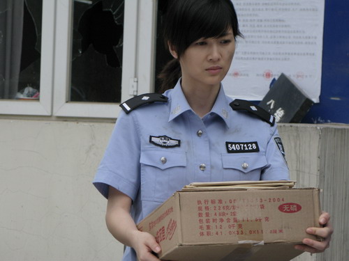 文/摄影 记者 李枫 虽说在《青春之歌》、《亮剑》等影视作品中演绎的都是红色人物,但童蕾本人其实是个现代感实足的时尚美女,本刊记者曾多次面对面对她进行过专访,对她多少有所了解,但此次在随童蕾走遍了德阳、绵竹、彭州等地的重灾区之后,记者又不得不重新审视这位现代美女,一路上,她的真诚、坚毅、镇定,以及她所表现出的朴实的爱心均给记者留下深刻印象。在《震撼世界的七日》拍摄现场,童蕾全情投入,她在演绎女警察蒋敏与丈夫重逢那场戏时爆发出的撕心裂肺的哭声,感动了全场工作人员。 为演好蒋敏,童蕾辗转上百里,到彭州寻访蒋敏 电视剧《震撼世界的七日》是6月6日在四川的汉旺镇开机拍摄的,王志文、杜志国、何政军、童蕾等一大批明星义务出演了这部作品,童蕾在剧中饰演的就是以英雄的女警察蒋敏为人物原型的角色。虽说在来汉旺镇之前,童蕾就仔细翻阅了所有能够查到的与蒋敏有关的资料和新闻,但为了能够真实地还原主人公的生活工作原貌,童蕾还是决定到彭州去寻访蒋敏,去了解和感受她的工作和生活状态,从而更好地把握剧中人物的内心世界。为了能顺利地到离驻地百里之外的彭州寻访到蒋敏,童蕾自费在当地租了一辆面包车,在拍摄间隙,记者和童蕾一起踏上了寻访蒋敏的路。我们的车子是早上8点出发的,在路经绵竹、德阳、广汉之后,终于在中午之前进入彭州。  童蕾怀着忐忑的心情敲响了蒋敏家的房门,却一直无人应答