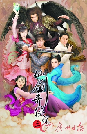 本报讯 (记者 陈羽中) 电视剧《仙剑奇侠传三》自今年1月杀青以来,一直在进行紧张的后期制作。目前记者从有关方面了解到,《仙剑三》的初剪工作在农历年前已经完成。此次制作方提前曝光了《仙剑三》的海报,片中6位主演胡歌、霍建华、杨幂、刘诗诗、唐嫣、黄志玮悉数亮相,海报的设计别具匠心,色彩绚烂,颇具古典风味,并隐约揭示了剧中人物的关系。胡歌饰演的景天手持魔剑站在最中央,戏中情侣雪见(杨幂 饰)手捧花楹在他背后,意味着雪见对景天的守护,景天的妹妹龙葵(刘诗诗 饰)亲密地揽着景天的腰作依靠状,代表龙葵对景天的依赖;作为女娲后人的紫萱(唐嫣 饰)手托起大家,以大地之母之姿抚慰众人,霍建华饰演的长卿与紫萱脚连脚成一线,一身白衣出尘脱俗,至于重楼(黄志玮 饰)则极具威严地飞跃于众人之上,魔尊气质凸显。