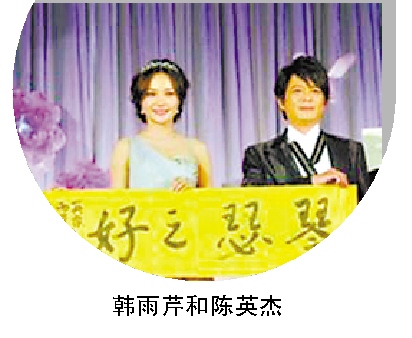 韩雨芹:嗯,是的,其实我们在2009年初就领证了,只不过上个月才在台中和上海补办了喜酒。当时他来探班,很多剧组的朋友都知道。张国立老师很鼓励我发展这段恋情。