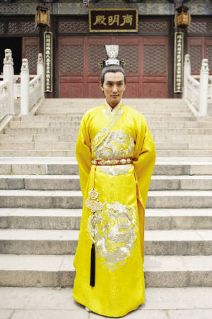 作为早年韩国大热团体“H.O.T”的主唱,安七炫与中国的缘分匪浅,2005年就来到中国与林心如合作了偶像剧《魔术奇缘》,从“H.O.T”单飞后还与吴建豪组成过“KV组合”在亚洲地区发展。2008年,安七炫在服兵役年龄到期前的最后一年应征入伍,2010年退伍复出。韩国男艺人服完兵役后常常会面临人气下降的尴尬局面,不过昨天记者在无锡见到的“龙袍加身”的安七炫却是天天被粉丝包围。据片场工作人员透露,每天都有大批粉丝围在影视城外,还有粉丝特地从韩国飞来,只为给偶像送上韩国的泡菜和各种零食。有意思的是,因为安七炫的粉丝大部分都是女生,剧组连扮演宫女的群众演员都省了,粉丝自告奋勇成了宫女,安七炫说:“作为皇帝,受宫女景仰是应该的,但是粉丝的眼神比宫女还要炽热。让我有点不好意思。”