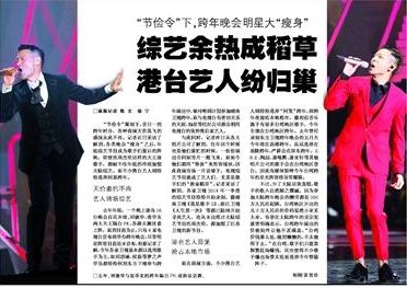跨年瘦身港台艺人纷归巢 综艺余热成稻草