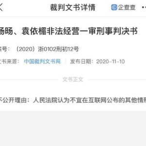 新浪娱乐讯 近日,《天官赐福》、《陈情令》原著作者“墨香铜臭”非法经营刑事一案已判决,但结果显示不公开。