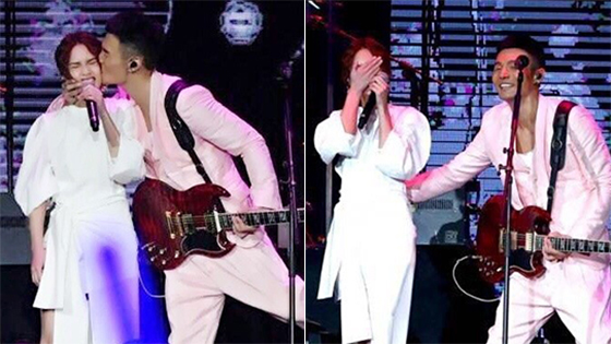 李荣浩演唱会强吻女友杨丞琳 大方认爱