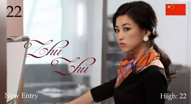 2014年,朱珠以第20名打败61名的刘亦菲和66名的范冰冰。