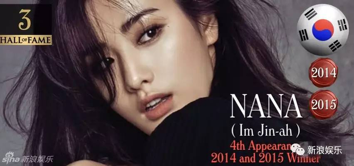 前两年的第一名,是韩国是After School组合的Nana林珍娜。