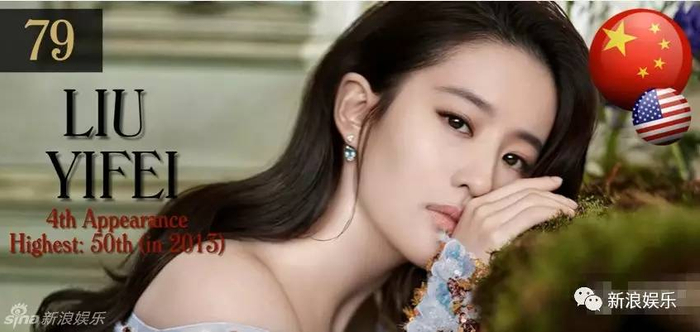 然后,重点来了,今年中国内地总共有5位女星上榜,分别是: