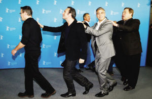 拥有豪华阵容的《古迹卫士》早在确定将登陆柏林时就引来影迷广泛关注。昨日,乔治-克鲁尼率马特-达蒙、让-杜雅尔丹、比尔-莫瑞、约翰-古德曼等主演一同亮相柏林电影节,召开影片记者会。诸位大牌主演还童心大发表演起了“开火车”,成功炒热现场气氛。