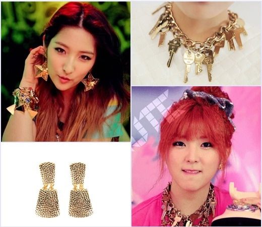 4minute的MV中南智贤佩戴了多种另类首饰,从金字塔手镯到珊瑚耳饰,都是翻倍魅力的时尚单品。此外,权昭贤以相似于钥匙串的项链展现了时髦气氛。bnt新闻/供稿 尹希那 金靖/文 4minute《你叫什么名字》MV截图、stylenanda/图