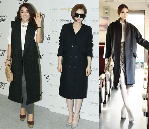 歌手BADA与演员金宥利纷纷以黑色长款单品,展示出帅气秋季范儿。BADA一身白色翻领衬衣搭配黑色裤子,外搭黑色长款马甲,展现出帅气中性范儿。而金宥利一身黑色大衣搭配墨镜,展示了冷酷而厚重感的装扮。
