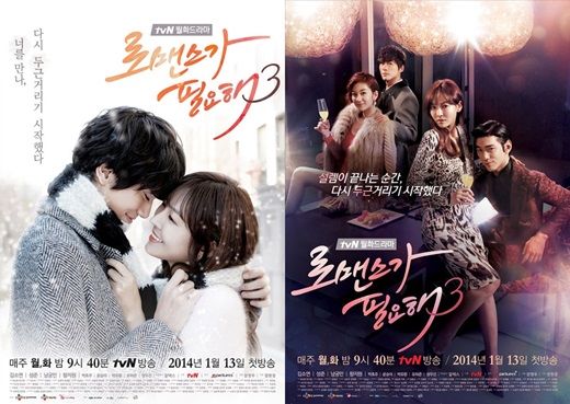 tvN电视剧《需要浪漫第三季》讲述了同龄三女的爱情、婚姻、友情故事。2011年第一季由赵汝珍和金桢勋[微博],2012年第二季由郑有美和李真旭倾情演绎。该剧将从1月13日开始播出。