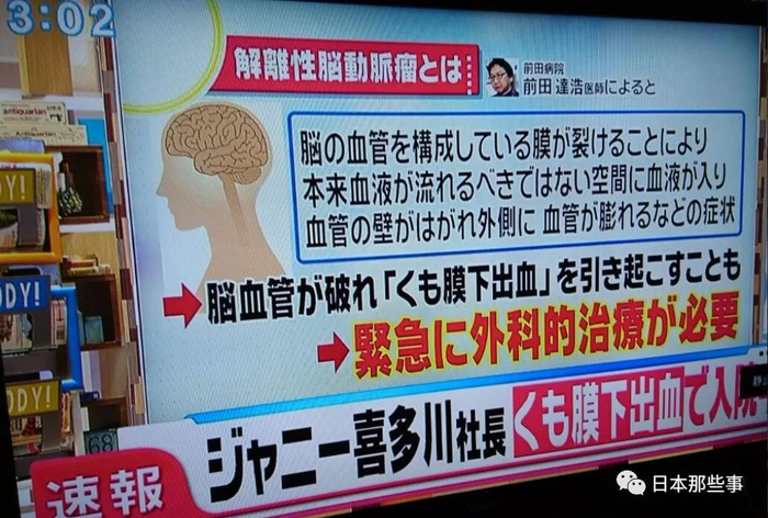 今天,杰尼斯旗下组合“岚”在出席活动时,向现场的记者正式公布了喜多川于6月18日因蛛网膜下腔出血入院治疗的消息。