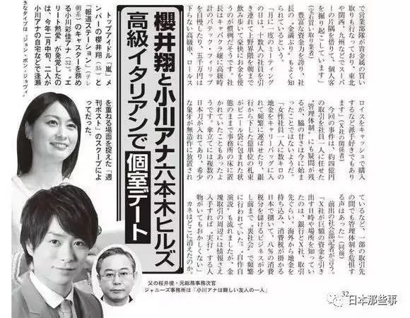 岚的樱井翔被爆和女主播小川彩佳酒店庆生: