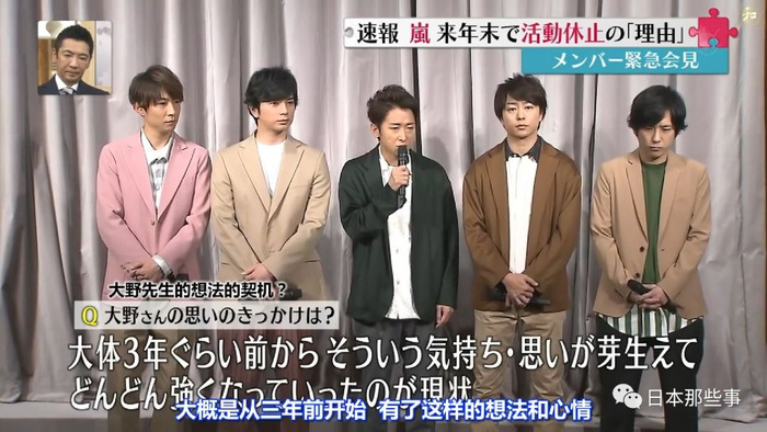 岚宣布组合活动持续到2020年末为止,队长大野智也将在同日休止艺能活动:
