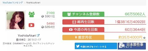 而在收入方面,吉田朱里更是甩开队友一大截。光是油管上的播放量每月就高达35万日元的收入,还不包括书籍版权及杂志专栏部分。