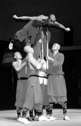 “金庸给了我们一个错误的武侠世界。”武侠小说里武林高手可以“全身刀枪不入”,在朱华银看来,这样的境界在现实中是达不到的。少林高手最多只能重点练几个地方,练成“硬门”。在《少林魂》的舞台上,观众也可以欣赏到少林功夫中的“刀枪不入”——缨枪刺喉、五枪刺身,锋利的刀枪确实就直刺演员身上。然而,演员必须将全身的真气聚集到需要“顶枪”的一点,如果分心,就会,皮破血流。
