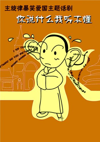 《你说什么我听不懂》作为戏逍堂2008年推出的第一部小剧场话剧,据悉将一改戏逍堂以往恶搞的风格,而转向传统风格。可是看到该剧宣传单页,似乎又不敢相信戏逍堂的承诺:单页上一个中国传统形象的漫画小人,两只大耳朵但似乎又充耳不闻。背面则是一堆毫不相关的词:“故事梗概:主旋律+爱国主义+爆笑+大辫子+小辫子+没辫子+…+十三姨+十三点+十三郎+十三妹+……王府井+新东方+东方不败+东方红+…+王府井饭店+艳照门+艳照窗+王府井盖儿+灯市口+……+中国人+洋人+假洋人+不是人+不是东西+……+逃跑新娘+女扮男装+耶稣+基努李维男+安安+你有药啊?+……+火枪+洋炮+爱辣舞优+爱母骚锐+爱大米+……+看海报的人+……+我说什么,您听懂了吗?”似乎在和观众开玩笑,真是不知道要卖什么药。