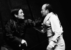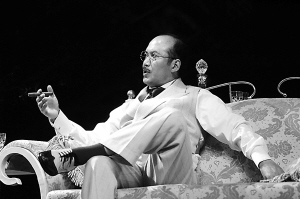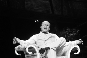 在话剧《日出》中,郭达扮演的是大银行家潘月亭,他留着一撮小胡子,戴着金丝边眼镜,身穿笔挺的西装,举手投足都流露着霸气,但同样充满着悲剧色彩,先是被下属讹诈,最后银行破产。在表演其银行亏损被管家发现那场戏时,郭达将潘月亭的故作镇静演绎得入木三分,全然没了小品中的朴实和幽默,而是多了几分道貌岸然的气质。