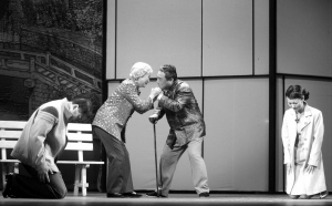这出戏每一场的跨度是16年。第一场抱在手里的婴儿,到下一场就16岁了,怎么能让观众看明白,这个高高大大的孩子就是之前的小婴儿呢?舞台表演不像电影,不能用切换镜头来切换时间、场景,所以每场的间隔,都会有一段简短的解说帮助观众了解剧情发展。